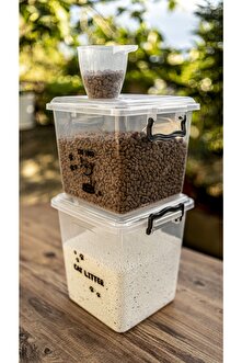 PatiliEv Kedi Köpek Kuru Mama Kum Saklama Kabı Kutusu Seti